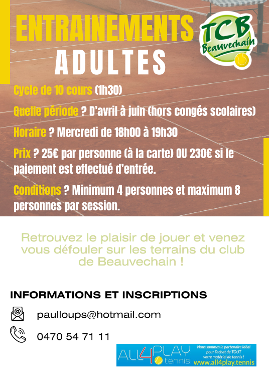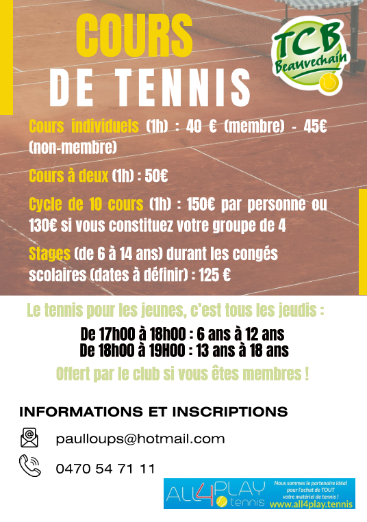 Le TCB propose des stages et cours de tennis à ses membres.